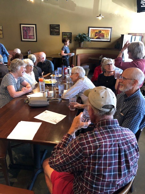 Eighteen of the twenty-nine attendees! (22 alumni and 7 spouses)